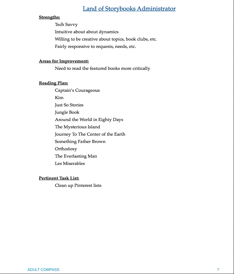 In this article, however, I want to focus on how those forms are inspiring for ME. A big part of Leadership Education is “having what’s mine”. If I focus too much on my kids, I cannot be truly inspiring because they are not seeing me lead my own life. I need to be grounded in my mission. My vocation. My calling. I have talents that need to be developed, skills to be learned and cultivated, books to read and work to do. Doing a Compass for myself every 3-6 months helps me to make the most of the gifts I have been given and helps me to focus on how to serve my family best.
