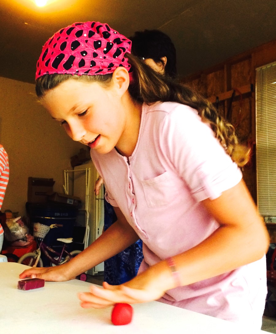 As we talked, one of us suggested that perhaps one of her big girls would be willing to “teach” a “clay class” for her middle kids and my little crew. It was brilliant. Our first Mom School was born. Colleen would teach the technique, Veronica would mentor my littlest and Meredith would float between the middle kids helping where necessary. The three big girls were all going to mentor the middle kids and what a beautiful lesson that would be for everyone involved! We still had the problem of what to do with her three littles (twin 10 month old babies and a 2 year old). We decided that we would plan the class for Labor Day when the dads could help.